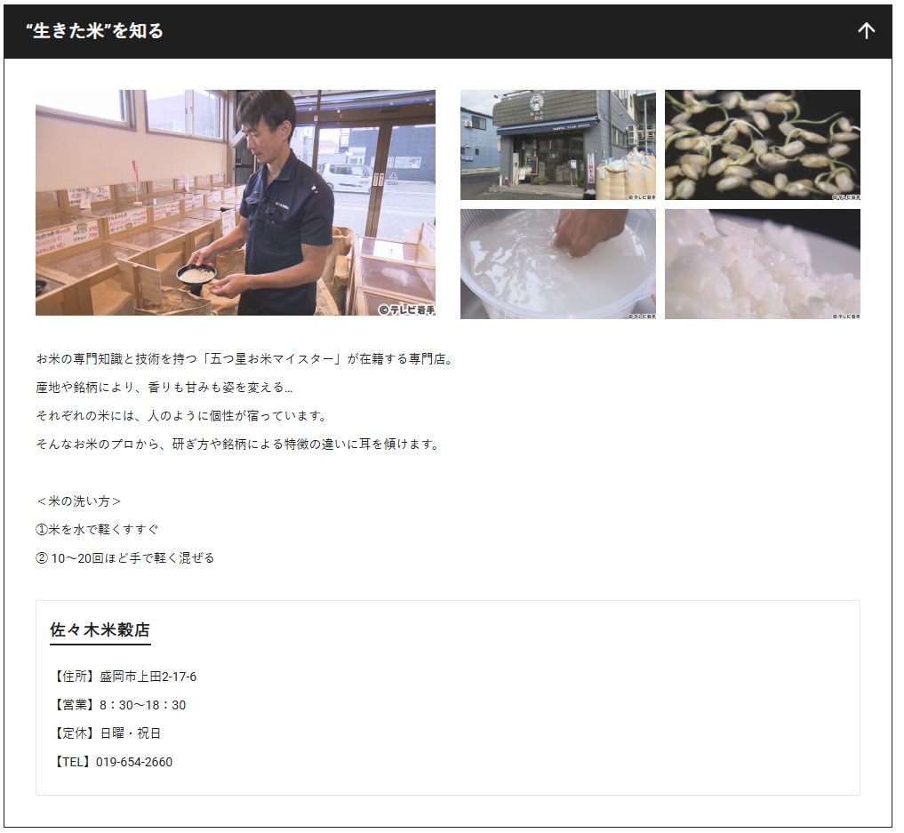 年末年始の営業のお知らせ 2025年11月15日 更新 おばんです岩手(NHK)に放送されました 2025年11月1日 更新 ピノキオ(テレビ岩手)に放送されました 2025年10月28日 更新 政府備蓄米は完売しました 2025年9月4日 更新 メニューに合わせたブレンド米の提案を始めました 2024年7月31日 更新